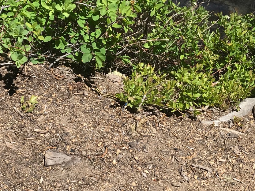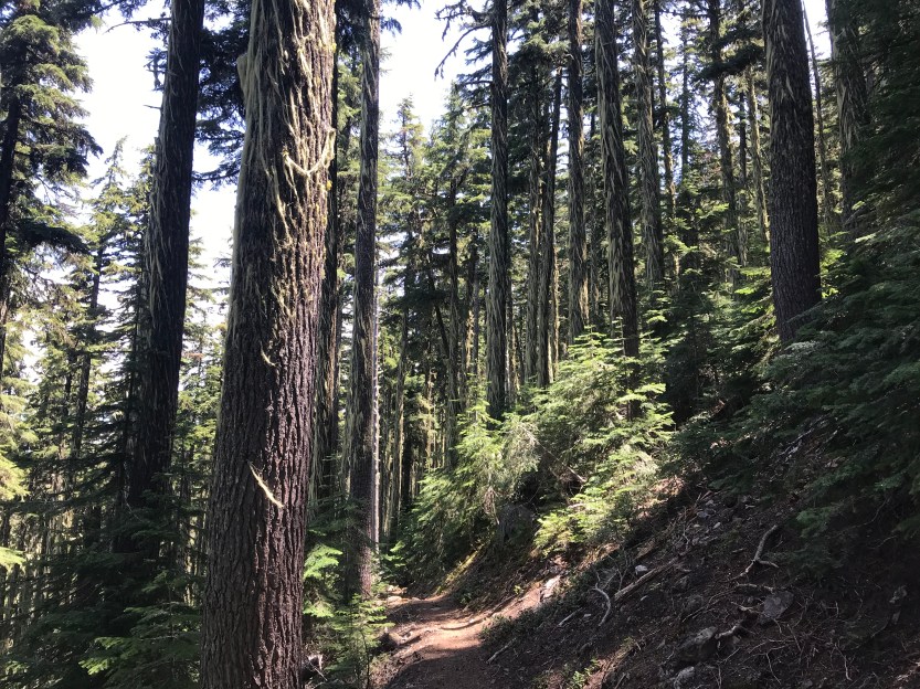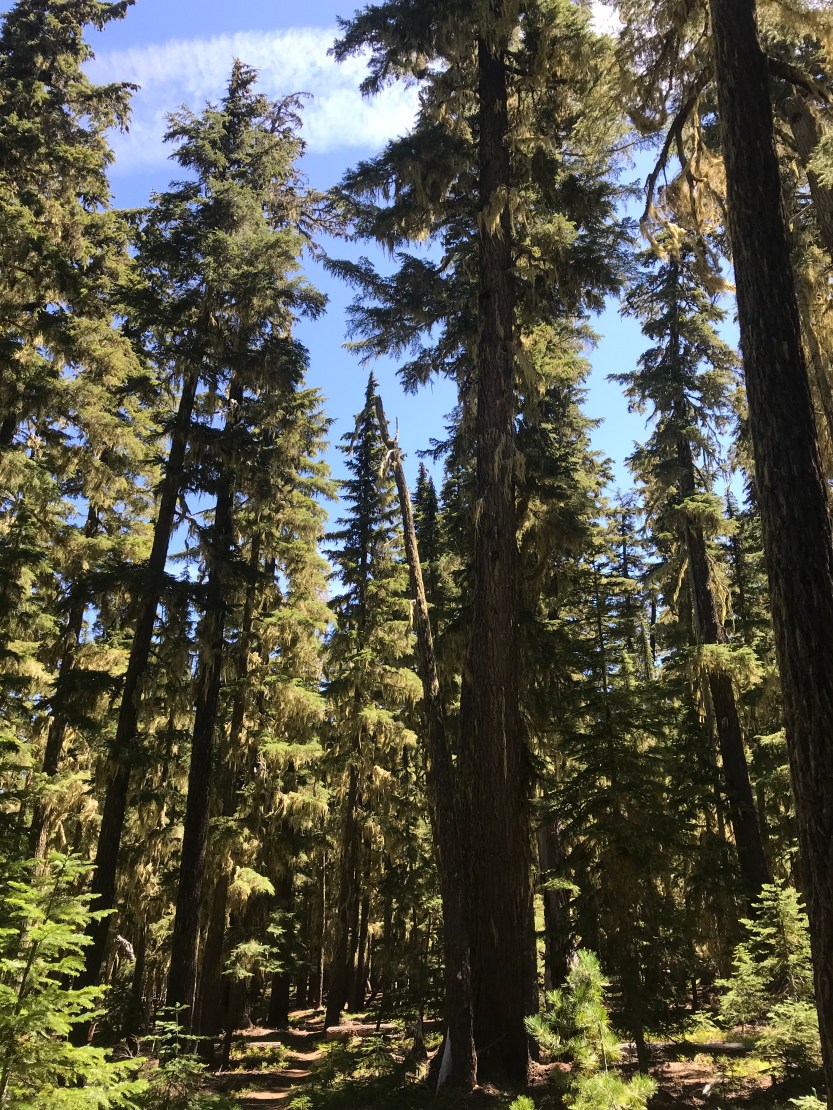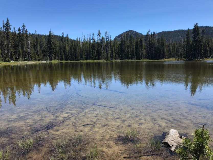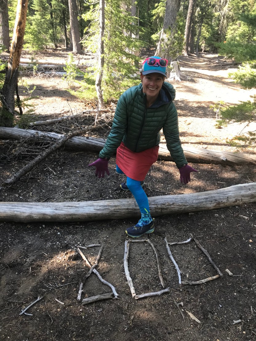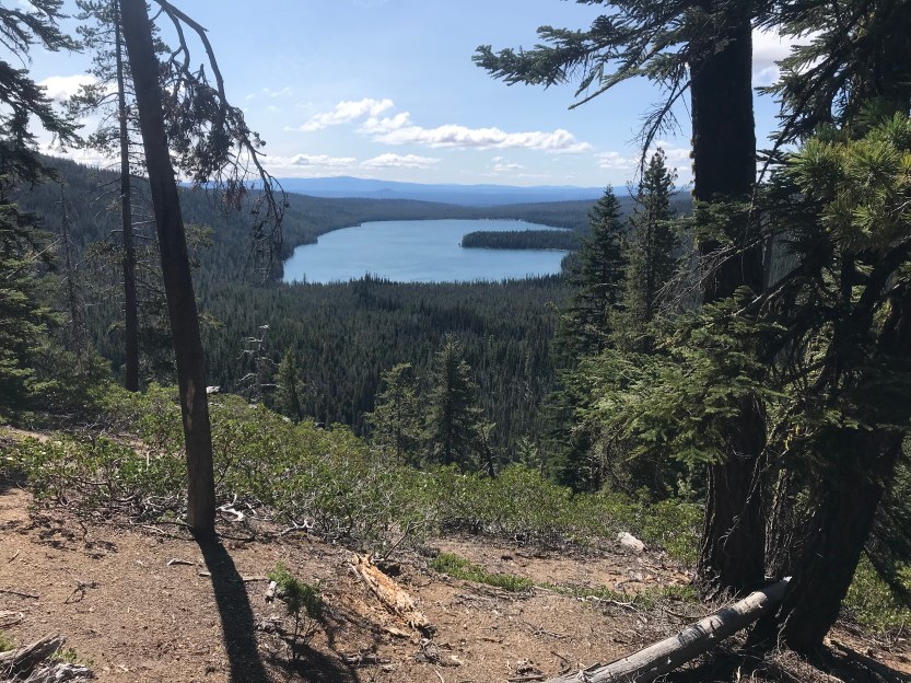Day 66: 20 miles hiked. We had camped at mile 800, so in the morning, I got to work on making our sign. I honestly don’t remember much about this day, except for that the snow was gone, and the mosquitoes returned. Being surrounded by mosquitoes meant that I didn’t really stop to enjoy much, and the pictures are few. We hiked through the forest for most of the day, and didn’t get views of anything beyond trees, except for one lake off in the distance. We made the decision to take an alternate footpath (along the Oregon Skyline Trail) into the next resort of Shelter Cove. We did this for one main reason: we were all tired of snow! The PCT went along a route that was higher in elevation, and was still completely covered in snow. In looking at the snow maps, I could see that the OST had none, and we all jumped at the chance to walk on solid ground for a day. My stabilizer muscles appreciated the rest day! We camped along the OST with 14 remaining miles to get to the resort.