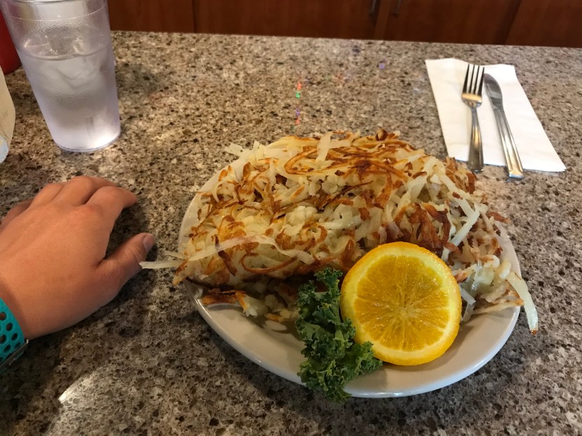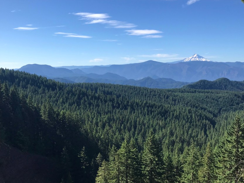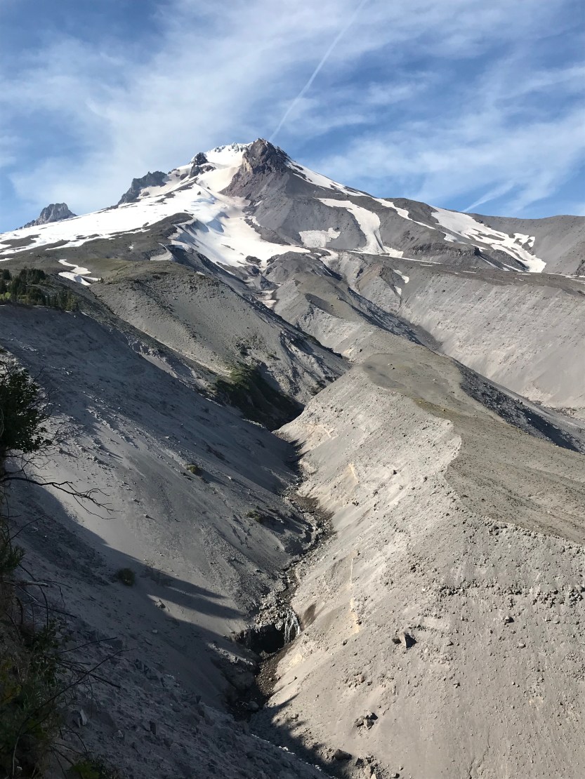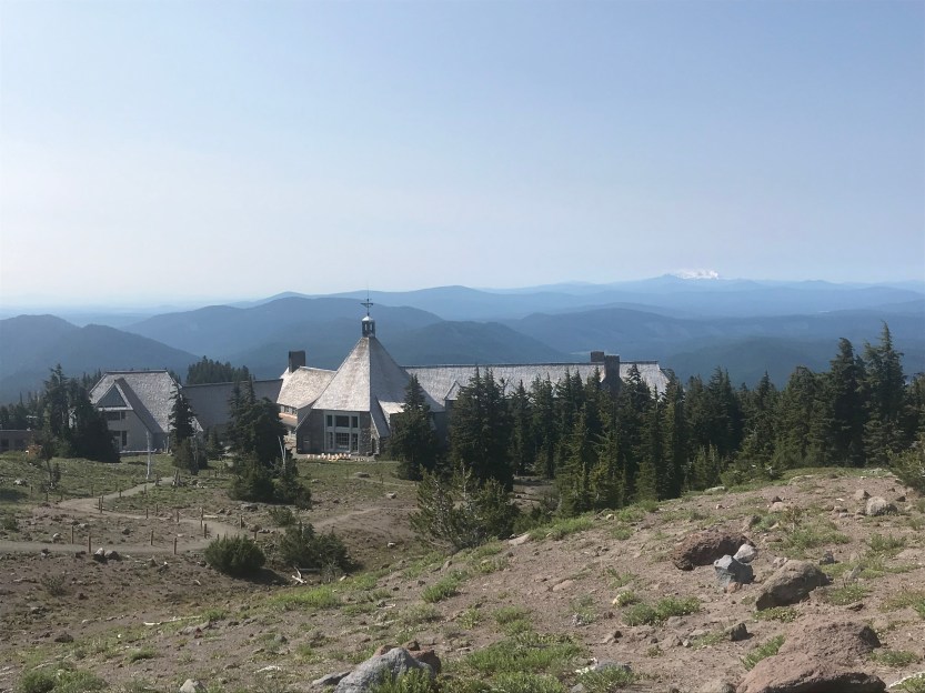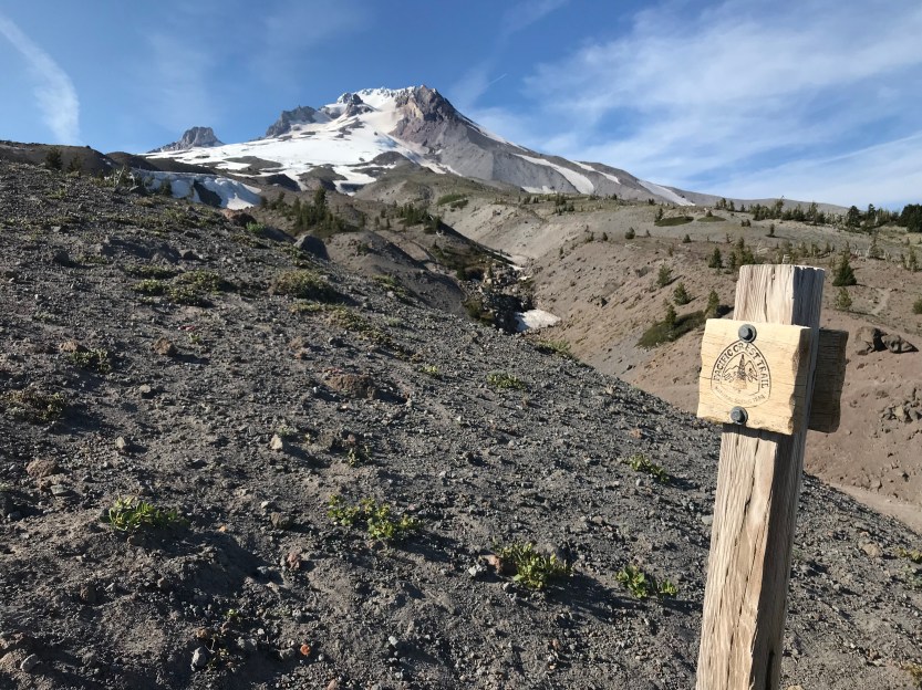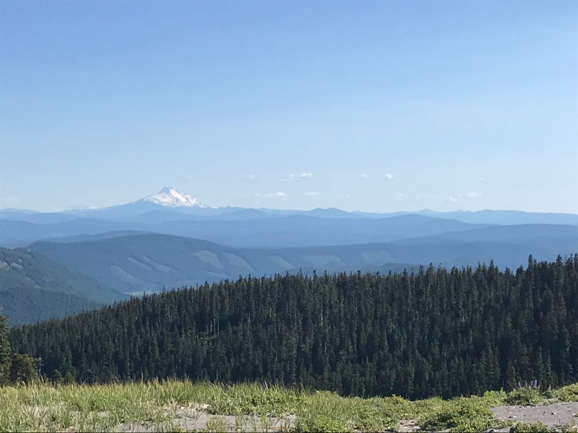 Day 80: 10 miles hiked. We woke up in our hotel room in Government Camp, and made our way downstairs for some breakfast. Beast’s friends, Sam and Firefly were there, as they had brought Beast’s Uncle Joe out to hike with us for the next few days. I ordered a very healthy breakfast of 1 donut, a piece of pie, and a side of hashbrowns. In retrospect, I should’ve just gotten the potatoes, since the side turned out to be bigger than an entire meal (see picture below). Government Camp is a ski town at the base of Mount Hood, which we were going to spend the day walking towards. After breakfast, the 6 of us left town and started our way towards Mt Hood. After a few miles, Sam and Firefly turned around to go back, as they needed to head back home to Bend, leaving Savior, Beast, Uncle Joe, and myself to continue on. The day was clear blue skies and beautiful! It was also all uphill and in exposed sand for most of the day, so it was slow going. We took our time in the forest at the base of the mountain, before we emerged with a beautiful view of Mt Hood. I looked behind and was surprised to get such an amazing view of Mt Jefferson, which I had not been able to see too much of in the weeks prior because of all of the terrible weather we’ve been getting. We hiked in and out of the valleys that surrounded Mt Hood until we got to Timberline Lodge, where we were stopping for the night. Timberline Lodge is famous amongst hikers for its all you can eat breakfast, and there was no way we were going to be ambitious in our miles and miss the buffet. It was Fourth of July weekend, so we were able to watch fireworks from our campsite. We built a fire, got pizza from the lodge, and had an all around great night.