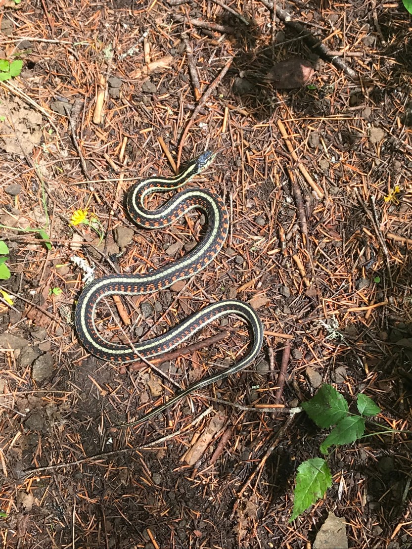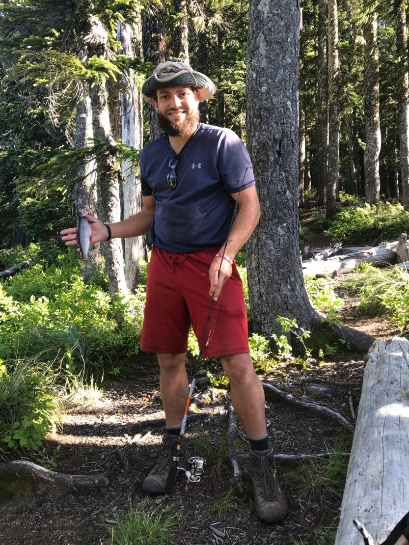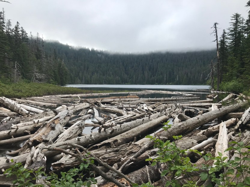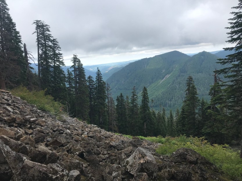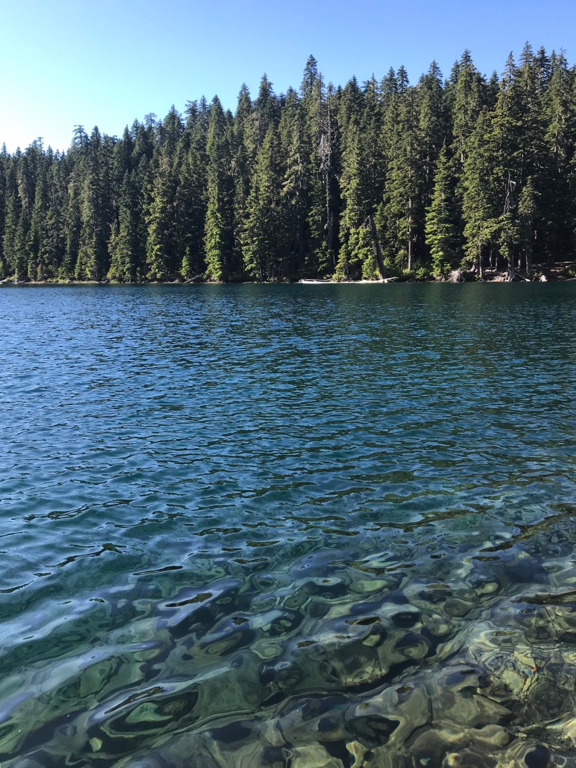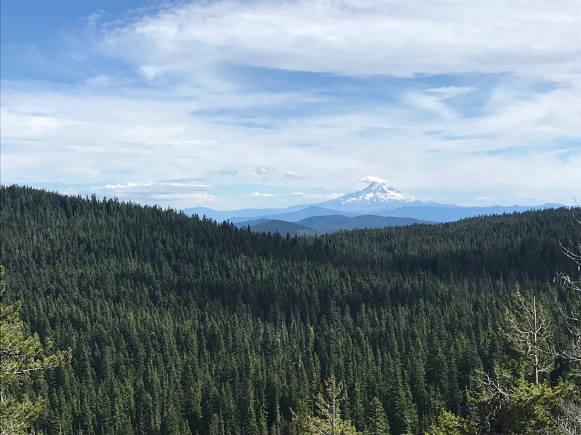 Day 88: 23 miles hiked. I woke up determined to have a good day and put in some longer miles. We had 10 miles of straight up to start the day, followed by 3 miles down, and then one last 8 mile push uphill, and I was motivated to get it all over with. I was excited that the trail would stop being so much of a roller coaster after today! The weather was amazing, all day! I was finally getting the July I was promised by all of the Washingtonians. As I climbed, I could see Mt. Hood off to the south of us. The top of the climb treated us to our first views of Mt. Adams, our next mountain we would climb around. I was in the trees for much of the day, but every once in awhile, I would get a window out and see Mt. Adams to the northeast or Mt. Hood to the south. Towards the end of the day, I also started to also see Mount St. Helens to the northwest, but unfortunately my phone had died at this point, so no pictures were taken. We passed by several lakes that each included their own swarm of mosquitoes, including sheep lake and green lake (aptly named… ew) before getting to our final stopping point, blue lake (beautiful). I got to the lake, took off my shoes, and put my feet in to soak out some of the pain. The water was cold and it felt amazing on my ankle that was still aching. Beast was fishing on the other side of the peninsula, and he caught two trout that he and Savior ate dinner! It was a tough day, with 18 miles of climbing, but it felt like things had maybe (*fingers crossed*) finally turned a corner and were going to get better.