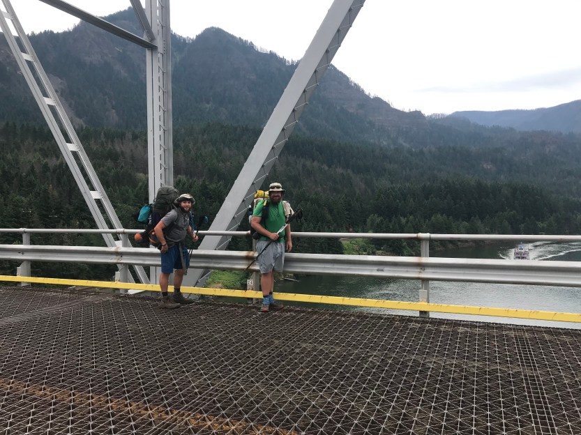 Day 85: 6 miles hiked. We said our goodbyes to Uncle Joe first thing in the morning, and then proceeded to finish up the last of our chores before heading out. In order to get across the Columbia River, we needed to walk across the Bridge of the Gods. This was a very daunting task, for me at least, as I’m afraid of heights. We had to walk along the road, with only a foot of space between us and the cars driving past us, but they were thankfully going pretty slow. My heart was racing and I was trying my best to keep calm and not look down. Meanwhile, Savior and Beast were behind me talking loudly about things falling through the grating or off of the bridge… not helpful guys! Halfway across and we were in Washington! We had hiked across (almost) the entire state of Oregon! (We had started about 25 miles from the California/Oregon border, so we still had to go back and finish up those last ones to call it complete)
