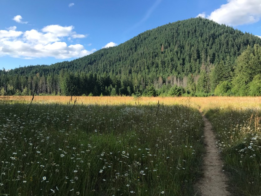 Ahead of us was a 12 mile climb, and we were hoping to make it to the top of the hill by the end of the night. We were still at lower elevation, so there were berries and flowers everywhere! Also everywhere still was poison oak. We were essentially in a rainforest, with vegetation coming at us from all sides. It was surprisingly tiring and mentally draining, walking uphill and trying desperately to avoid all of it, for fear that it would be poison oak branches reaching out. Despite the brace and medication, my ankle also hurt and itched quite a bit and I needed to be precise with how I took each step. For the first time, I thought about quitting all together. I was so tired of being rained/snowed on, I was tired from all the walking, my ankle was on fire and it hurt like hell if I stepped wrong, and I wasn’t sure I should even be walking on it. I wondered if I should be spending my time traveling the world, instead of walking across the US. We decided to pull the plug early and camp at the next campsite. When we got there, we discovered some people were already there, and it turns out we knew them! Our friends from the desert, Superman and Flower, had jumped up over the Sierras to hike Washington! We hung out and caught up for awhile before it again started to rain on us. Frustrated and annoyed by the constant terrible weather, I set up camp, and started to make dinner. I had thought the whole day that I had packed lasagna for dinner and I was really looking forward to eating it. It turns out I had actually packed my least favorite thing in the world, instant mashed potatoes (I’d eaten this too many times, and I now find them absolutely revolting). As I pulled it out of my food bag, I began to cry, feeling more defeated than I ever have before on trail. I’ve never cried over mashed potatoes before, but I guess there’s a first time for everything! When I set out on the trail, I had given myself permission to quit only in the cases of injury, illness, or family emergency. I was now injured, and thoughts of putting myself out of my misery and getting off trail danced in my head all night. I just repeated to myself over and over the mantra of don’t ever quit on a bad day, only quit on good days.