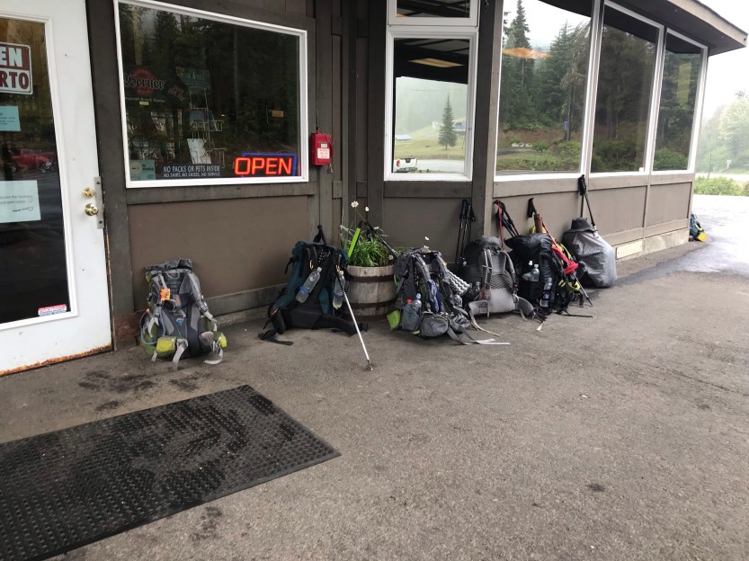 I was really looking forward to Trout Lake. A shower would likely help with my infection, and I had sent two new ankle braces there that were designed for hiking and would allow for a bit more flexibility in walking. As I walked, it became clear that the snow had only just melted in this area, as we were at times in whole seas of avalanche lilies as well as surrounded by swarms of mosquitoes for most of the day. We passed by countless ponds, rivers, lakes, and snow melt puddles. We walked through several lava fields and spent most of the day leapfrogging with several section hikers (people that were only hiking the state of Washington, as opposed to the whole PCT). Despite my recent injection of determination, I couldn’t help but feeling endlessly jealous of the section hikers… they had so much energy and they were soooooo excited to be out hiking. They were on day 4 of their adventure, they were 60 miles in, with only 450 miles remaining and their constant chipper-ness caught me off guard. We stopped at a dirt road for a break, and I took the opportunity to change my bandages on my ankle. My wounds were oozing, and I needed to change the gauze (and add new antibiotic ointment) as often as possible. This was a pretty excruciating process that I won’t describe because it was also very gross, but suffice it to say, I was not in the best of moods. While I was in the middle of doing this, the section hikers walked by to comment on how wonderful it is to take a break from life and hike… oh to remember that feeling of excitement! After three months straight of hiking, it had started to feel like a job instead of a hobby. Most of the day was pretty flat and downhill, except for one 2.5-mile section that was very steeply up. Today I decided that I would no longer stop on any uphill section (unless it was longer than 6 miles, but that’s only because I like to take a break every 6 miles). This was entirely based on stubbornness. I felt like the trail was defeating me if I had to stop to catch my breath when I was going up, and well, I wasn’t going to let it break me. I put some Lady Gaga on in my ears and sprint walked up the hill, knowing I would soon be taking a break in town, with a burger and beer in my hands! We pushed all the way to the road to town, and we were fortunate enough to have a trail angel show up right then to pick up some other hikers. He had enough room in the bed of his truck for all of us, so we climbed in and made our way to town. We resupplied on food, picked up packages, did laundry, charged our electronics, showered, ate burgers, and had a few beers. Two hours later, we were making our way to get back on trail (we’ve got this whole town thing down to a science). Our second hero (hero= 20+ miles, get all of your chores done, back on trail)!